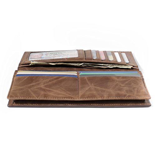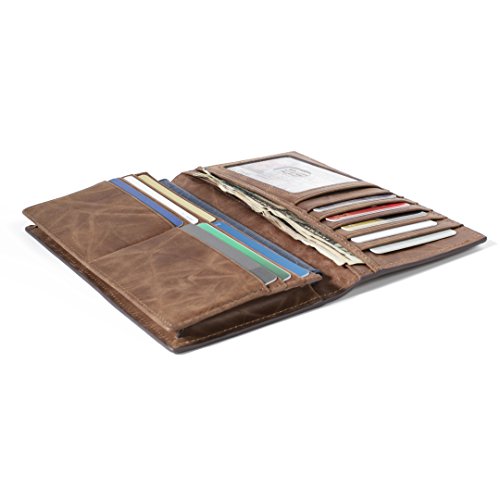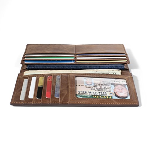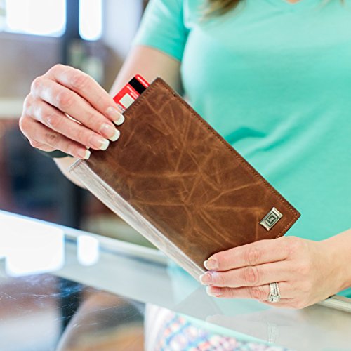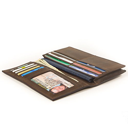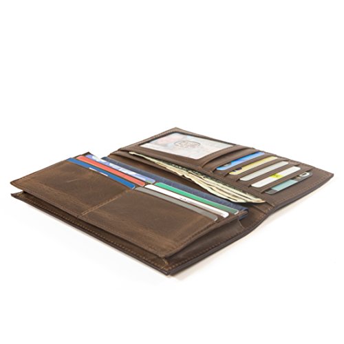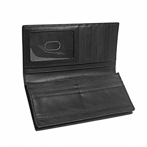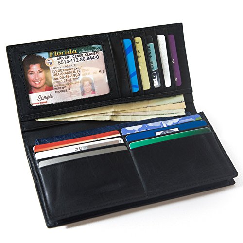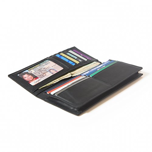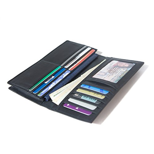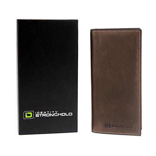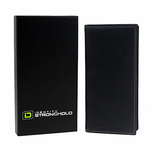 Binding : Apparel Product Description Our extremely thin Checkbook RFID Wallet is shielded to protect you from electronic pickpocketing. It will hold a checkbook and has 11 credit card slots plus a clear ID window with thumb hole. Two full length pockets will hold cash, check register or additional cards. The top grain leather will allow for a beautiful natural patina to develop over time. A great choice for both men and women. Identity Stronghold started the RFID protection industry in 2006. We continue to lead this industry by creatively applying shielding technology to a variety of products that block radio waves and thereby prevent thieves from remotely accessing your private information (including your complete credit and debit account numbers). Beware of imitations that aren't made by Identity Stronghold. We have tested many of those knock-offs in-house, including some of those hard metal wallets. Many do not shield effectively. In fact, some knock-offs actually include documentation admitting they are not 100% effective. You can be sure you are protected when you use Identity Stronghold RFID blocking products. As with all our wallets at ID Stronghold, every slot, billfold, and compartment is individually shielded, so your information is protected even when your wallet is fully open. This is a feature not found in most other brands. Each wallet comes with its own original ID Stronghold gift box so you can buy one for yourself, and one for a friend. Some older building access cards that operate at 125Khz may not be totally blocked by our Secure Wallets. 0
