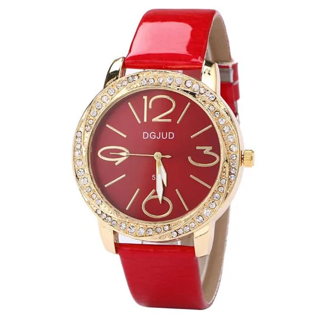 상품 내용 귀여운 색상 여성 다이아몬드 팔찌 시계 패션 여성 반짝이 가죽 밴드 합금 석영 손목 시계 도매 무료 배송 특징: