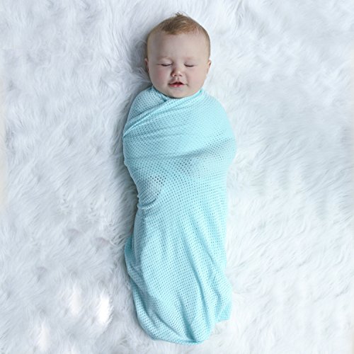 Woombie 3 Piece Organic Airwrap Vented Blankets, Aqua/Gray/Lime, 44"