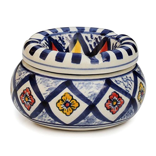 Benzara Souvnear Moroccan Round Ceramic Ashtray with Lid Ash Tray