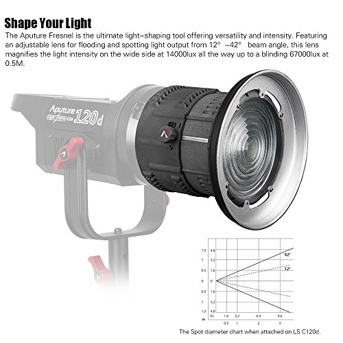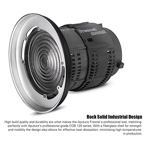 Specifications: Brand: Aputure Model: Fresnel Compatibility: For Aputure Light Storm COB 120T 120D and other Bowens Mount Lights, also for Grids and Barn Doors(7") Item Weight: 513g / 18.1oz Package Size: 19.2 * 19 * 15cm / 7.6 * 7.5 * 5.9in Package Weight: 633g / 22.3oz