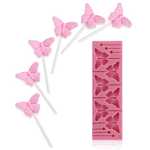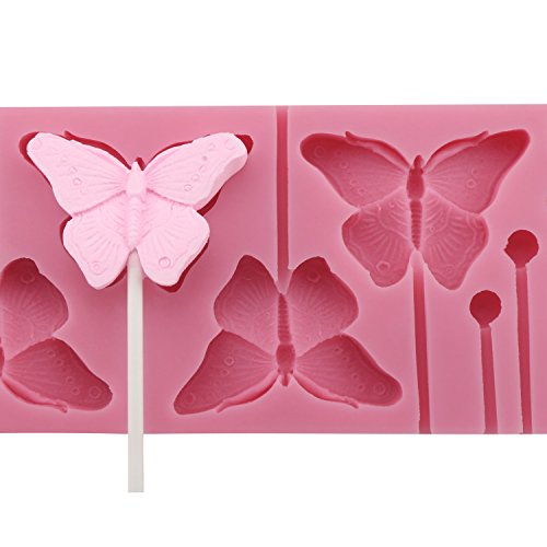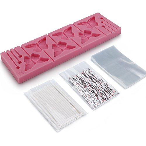 - PACKAGE LIST: Pink butterfly shaped silicone mold x 1, lollipop stick x 50, twist tie x 50 and bag x 50.