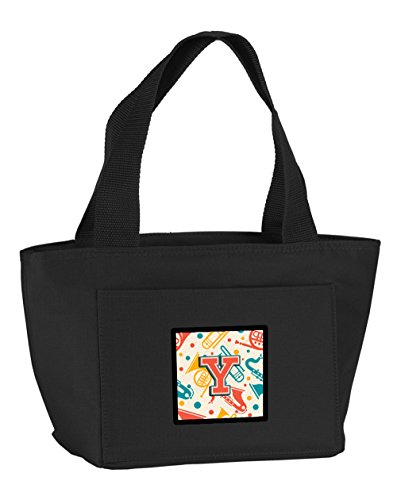 Caroline's Treasures CJ2001-YBK-8808 Letter Y Retro Teal Musical Instruments Initial Insulated Lunch Bag, Large, Multicolor