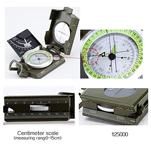 USCAMEL Professional Metal Pocket Size Waterproof 50mm Dial Compass (Army Green)