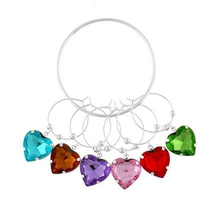 -. Title : Wine Charms ~ Multi Color Crystal Hearts Wine Glass Charms Set of 6 (Blue, Brown, Purple, Pink, Red, Green) (Wine Charm 039c 20)