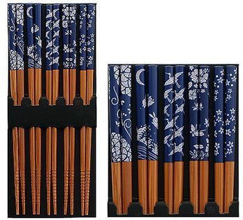 -. Title : Five Pairs of Asian Blue and White Wooden Chopsticks