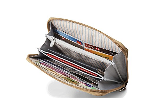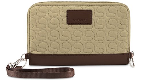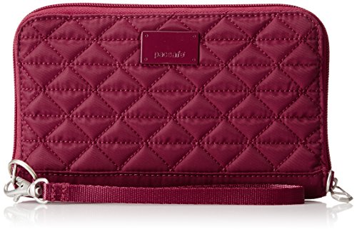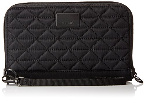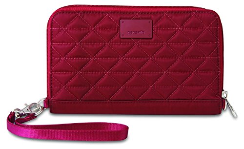 The RFIDsafe W200 anti-theft RFID blocking travel wallet is elegantly designed, with built-in organization and security features. This wallet is a woman’s best friend, helping provide protection from identity thieves, while keeping cash, cards, and travel documents organized. The zippered wallet is built with RFID blocking material that helps prevent your data (such as from e-passports, credit cards, and key cards) from falling into the wrong hands. It comes with a detachable wrist strap, while the main compartment features eight card slots, a zippered internal coin pocket, a mesh passport pocket, and two open slip pockets. It measures at 5.1 x 8.1 x 0.6 inches (HxWxD) and weighs just six ounces. Pacsafe keeps travelers one step ahead of the game by keeping their gear secure from opportunistic thieves with a wide range of stylish adventure backpacks, leisure bags, urban bags, women’s bags, and camera bags, as well as luggage and travel accessories. 0 |
