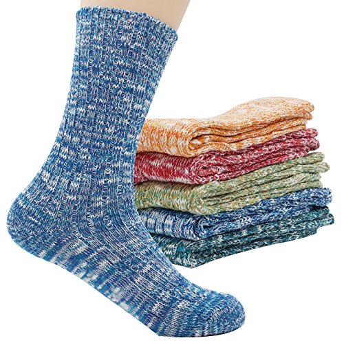 -. Feature : Socks material & Size: 80% Combed Cotton + 20% spandex; Size: Sole length: 7"-9"; top to heel: 5"; / Socks Features: Crew socks; 5 different colors, bright and colorful, vintage style design; Stereo stocking welt and elasticized openings won't dig into your ankle; Stretch and gender elastic, throughout for a superior fit; Reinforced Heel and toe; Soft and comfortable for your feet; / Socks washing instruction and package: Both hand and machine wash is OK; Low temperature wash and open-air drying. / Occasions for this crew socks: Perfect for everyday wear, work, sports, boot, hiking, running, flying and travelling and all kinds of athletic activities; Good Matching for all your sneakers, canvas shoes, flats and loafers; Suitable for all seasons' wear. / Packages for this 5-pack socks: Perfect for gifts on holidays! Send these to show your love to your mothers and girl friends!