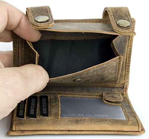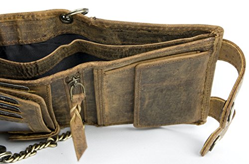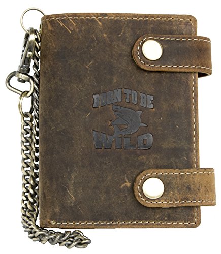 -. Binding : Lage -. Brand : Born to be Wild -. Color : Brown -. Department : mens -. EAN : 8595620016309 -. Feature : Born to be wild hunter style natural genuine leather wallet with shark / Trifold design, two buckles to keep content safe / Pocket for coins / Dimensions 3.9 x 4.9 inches (10 x 12.5 cm) / 14 inches (35 cm ) long metal chain to hang -. MPN : 100b142-CA -. PackageQuantity : 1 -. PartNumber : 100b142-CA -. ProductGroup : Apparel -. ProductTypeName : LAGE -. Size : One Size -. Title : Men's Natural Genuine Leather Wallet with Metal Chain with Shark