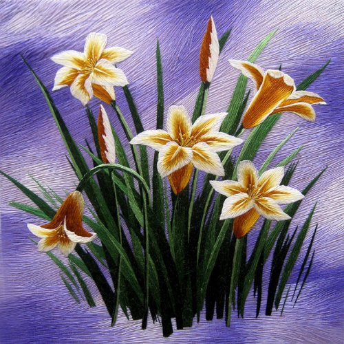 - Title : King Silk Art 100% Handmade Embroidery Mixed Iris Popy-Orchid Chinese Print Framed Flower Floral Painting Gift Oriental Asian Wall Art Décor Artwork Hanging Picture Gallery 36162WFG