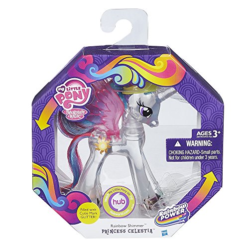 -. Feature : Rainbow Shimmer P.R.Incess Celestial pony figure / Figure's wings shimmer / Rainbow colors in beautiful designs / Filled with Cutie Mark glitter / Includes pony figure