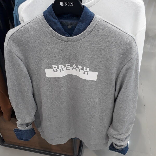 가벼운 맨투맨ㆍ사이즈가 넉넉히 나와 안에 가벼운반팔이나 셔츠를입어서면바지나 청바지에 조화를이루어 가볍게 멋내기 충분한 아이템입니다