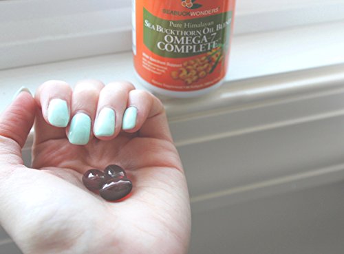 The easiest way to get all the benefits of sea buckthorn oil! This supplement contains one of the rarest fatty acids on earth and host of other nutrients. Sea buckthorn berry oil has the highest concentration of omega 7 in nature. Fish oils need harsh processing to isolate omega 7. Sea buckthorn berry oil is rich with nutrients and we would never isolate the oils. This source of omega 7 is sustainable, vegan, and the most nutritious. Omega-7 complete is a blend of sea buckthorn seed and berry oil. These oils are traditional herbal health and beauty supplements. This natural blend addresses many needs and has many uses. It contains Omegas 3, 7, 6 & 9. Skin, immunity, cardiovascular, digestive and liver support are all benefits of Omega-7 Complete. This blend is also great for cellular health and moisture throughout the body. People suffering from dry cell conditions enjoy using this product. Due to its fatty acid and antioxidant content, it encourages healthy inflammation response. We use only CO2 extraction, the gentlest method to preserve nutrients in the oil. Omega-7 complete is shelf stable and does not need to be refrigerated. This product is in Kosher Certified beef gelatin capsules.The product contains 120 softgels, but the dosage is 2 softgels daily, so it is a 60 day supply.