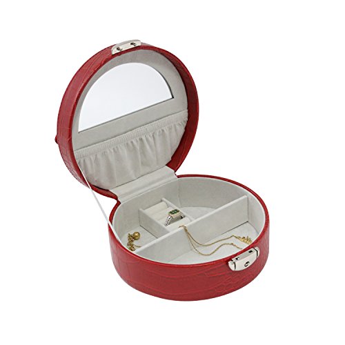 Time Factory AJ-BB654RED "Croco" Leatherette Round Jewelry Box, Red