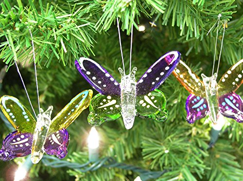 Butterfly Ornaments - Set of 3 Colorful Crystal Butterfly Ornaments - Holiday Decorations