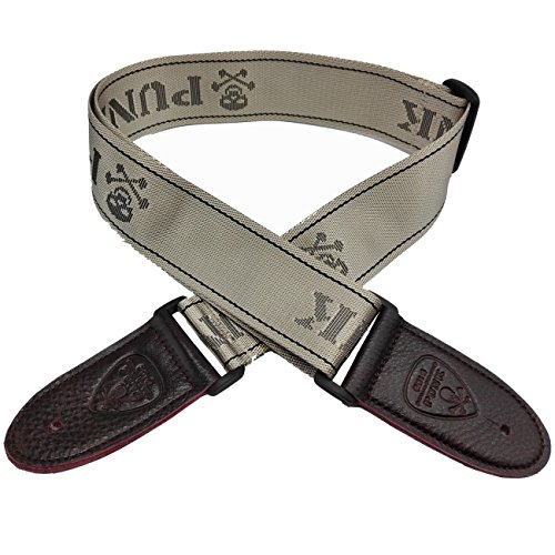 -. Title : Crosstree Adjustment Nylon Material Guitar Strap Skull Punk Design with Real Leather Ends for Acoustic,Jacquard Weave Classical and Electric Guitars strap Suitable for All Ages