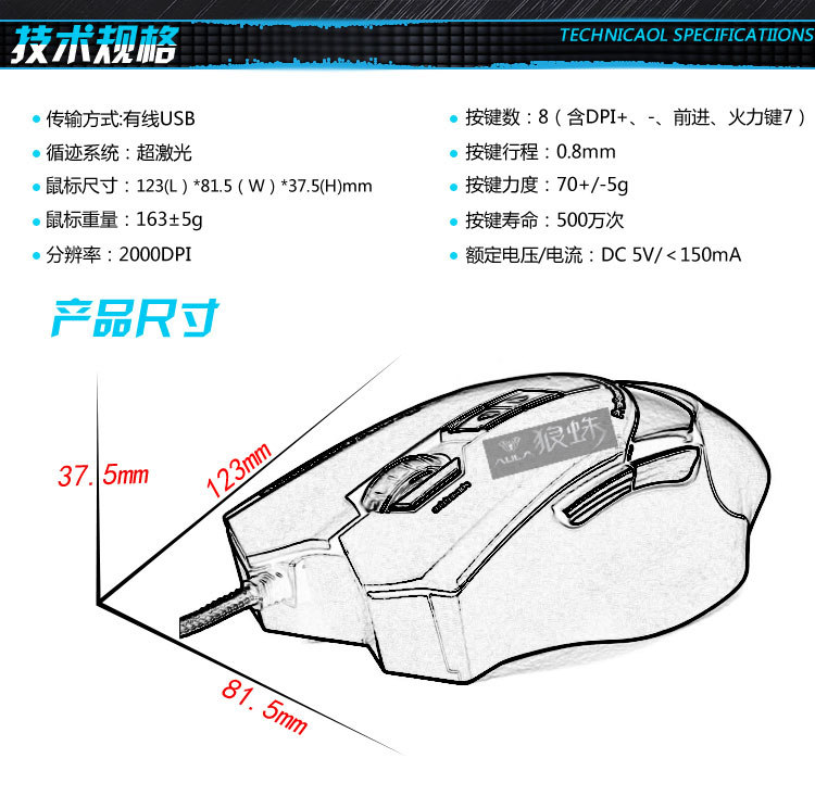 狼蛛 帝恨 有线鼠标 7D专业游戏鼠标竞技超激光鼠标 CF/LOL