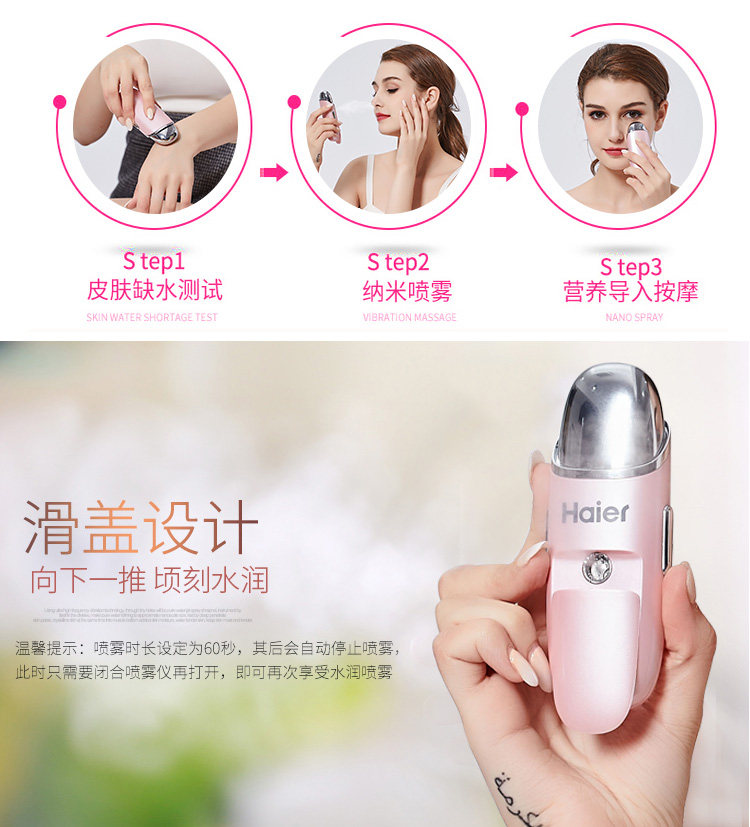 海尔迷你补水仪纳米喷雾冷喷机脸面部保湿美容仪蒸脸器神器便携式