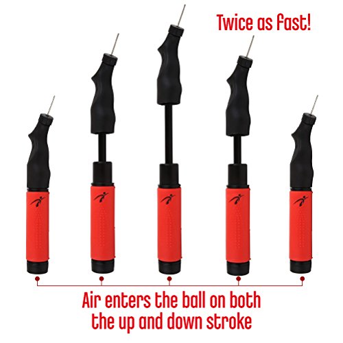 DUAL ACTION HAND PUMP: Pumps twice as fast for more efficient inflation. Don't tire yourself out while inflating your balls & toys!