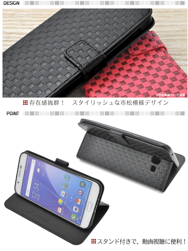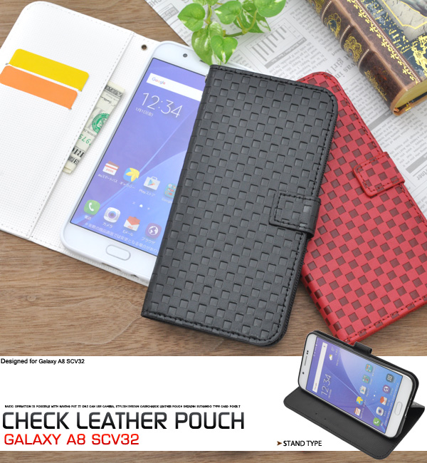 Galaxy A8 SCV32用市松模様デザインスタンドケースポーチ