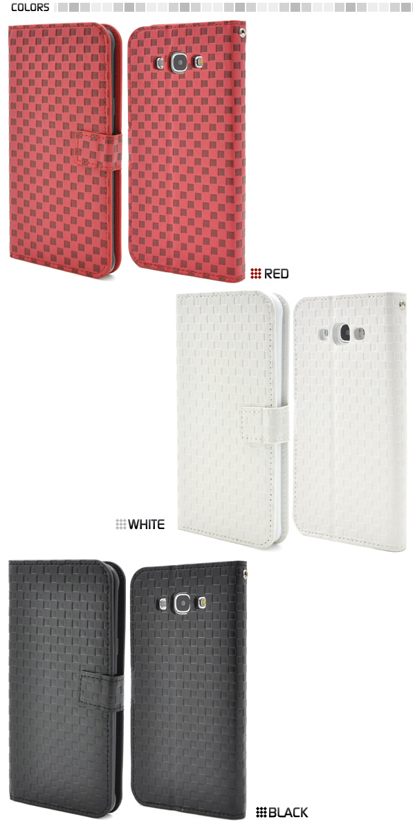 市松模様レザーデザインのGalaxy A8 SCV32用スタンドケースポーチ。