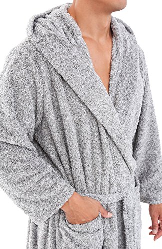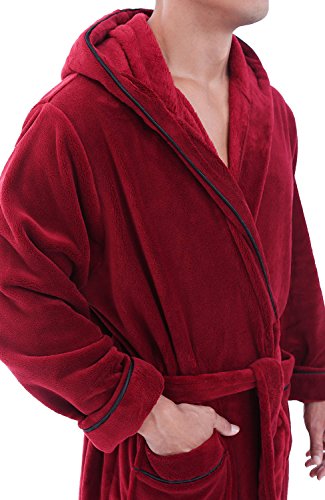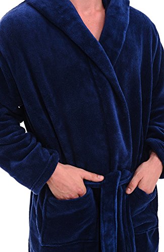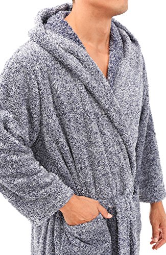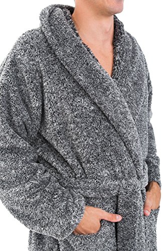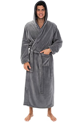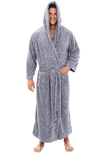 Binding : Apparel Product Description This thick, soft robe for men from Alexander Del Rossa is made from premium fleece fabric. Our 15 ounce polar fleece is soft, lightweight, and durable to keep you warm without weighing you down for years to come. Designed with you in mind, this luxury robe is great for lounging around the house, walking your property on a brisk morning, or even for use as a smoking jacket. Soft, lush, and rich in features, we trust that your purchase of this men's robe will not leave you disappointed. Bathrobe Features Thick, 15 ounce polar fleece fabric Full length design to keep your whole body warm Soft, warm, and durable Large hood to keep your ears and neck warm Two large patch pockets Double belt loops for a custom fit Standard length (see sizing recommendations below) Inactive (chemical free) dyes Washing Instructions Wash in cool water with like colors and Dry on low heat.We recommend using a light detergent and washing with other soft materials to keep your robe looking it's best. Sizing Recommendations Small/Medium: Will fit Chests 34-40 inches, Robe length 59 inches Large/XL: Will fit Chests 42-48 inches, Robe length 59 inches XXL/2XL: Will fit Chests 48-52 inches, Robe length 59 inches 3XL-4XL: Will fit Chests 54-60 inches, Robe length 59 inches
