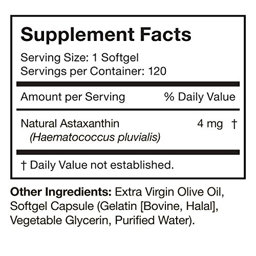 4mg of Powerful Astaxanthin per Serving - each small, easy-to-swallow softgel features 4mg of astaxanthin with 120 servings per bottle.