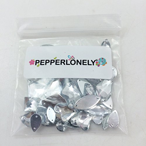 PEPPERLONELY 50PC Clear Sew On Mixed Shape & Size Flat Back Faceted Acrylic Crystals Rhinstones, 7~21mm