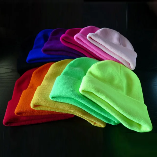 | [해외]남성 및 여성 형광 컬러 비니 겨울 따뜻한 Unsex 뜨개질 모직 모자 야외 스포츠 모자 탄성 헤지 모자 스키 모자 |