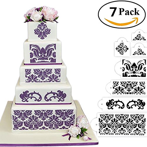 HULISEN 7Pcs Cake Decorating Stencil Mold Wedding Cake Stencil