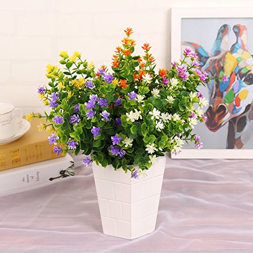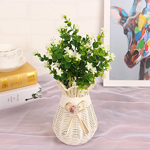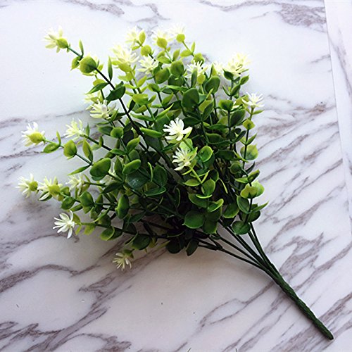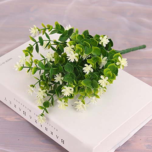 PRAGOO Artificial Eucalyptus Flowers Fake Bouquet Green Plant Home Garden Wedding Decor Party Room Decoration 2Pcs (White)