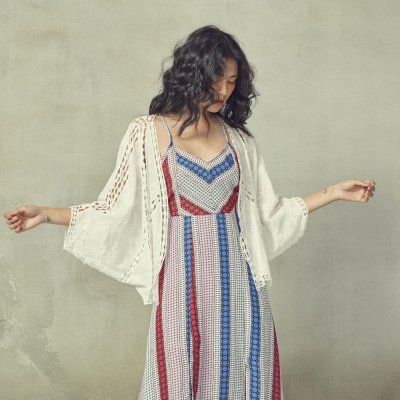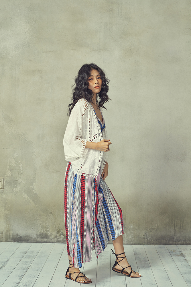화이트 코튼에 자수를 넣어 섬세한 느낌의 보헤미안 커버업입니다.