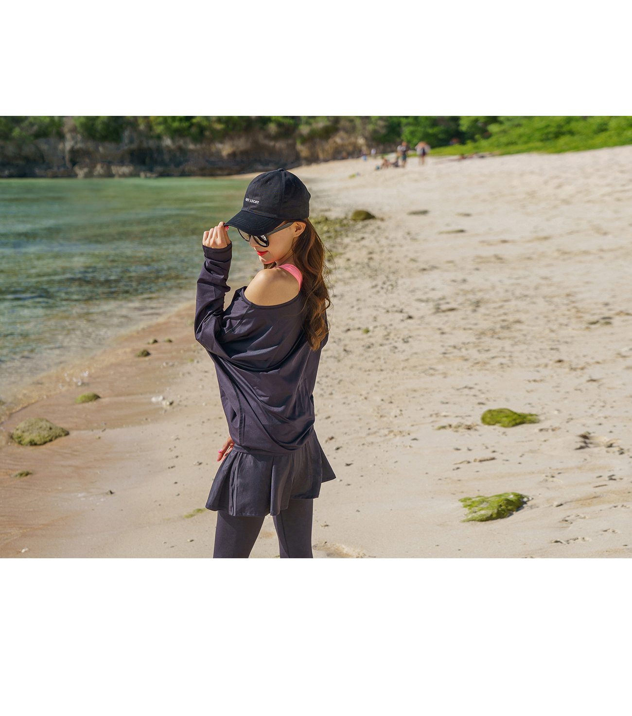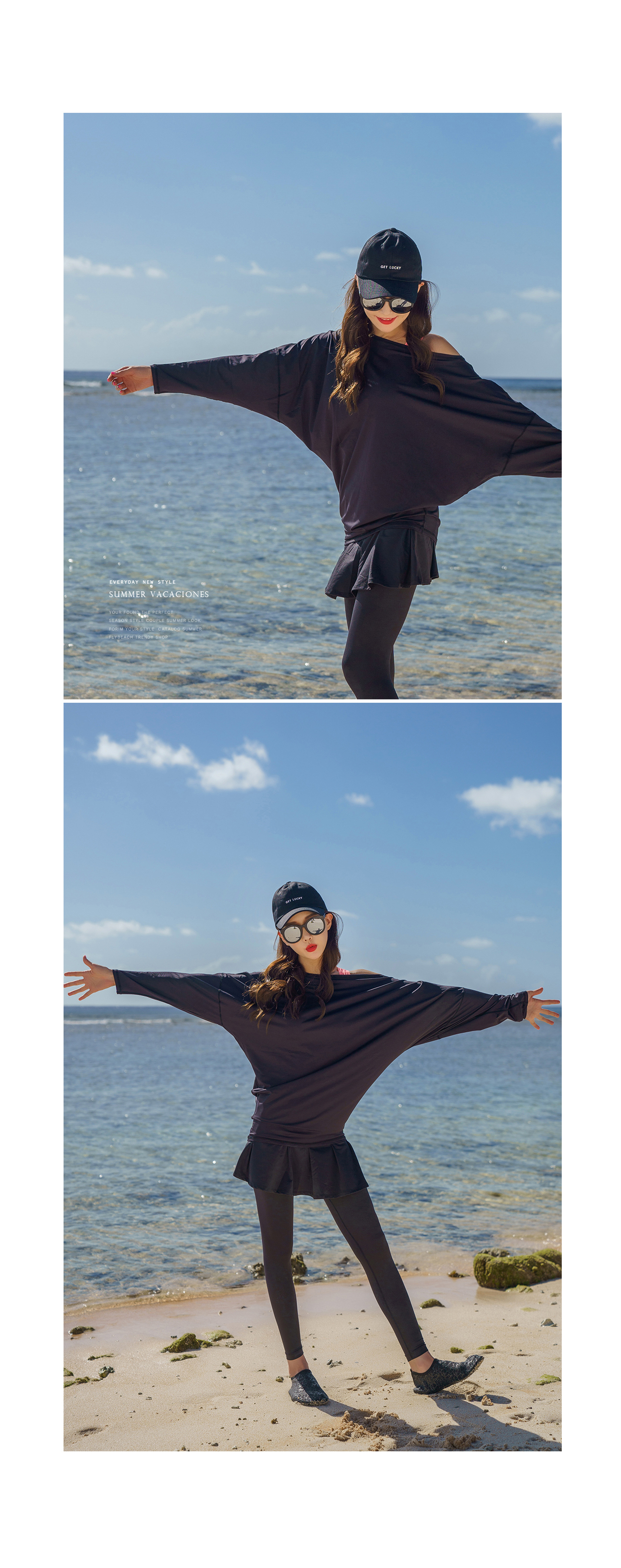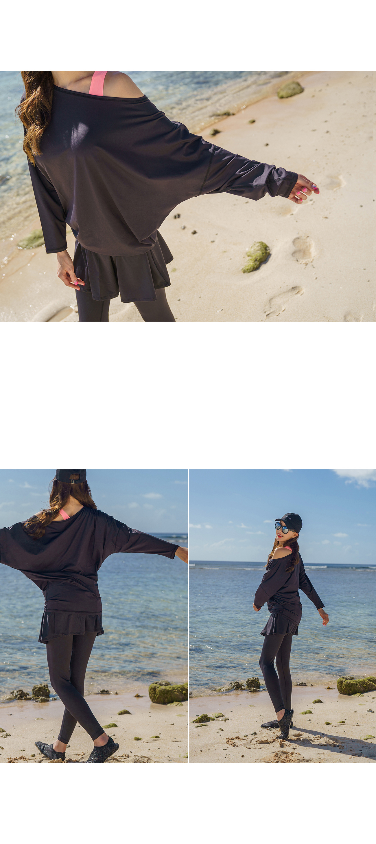 가오리래쉬가드상의 22800원, 치마워터레깅스23400원