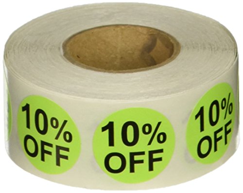 InStockLabels 10% Percent Off Stickers 3/4 Inch 500 Adhesive Stickers, Hot Green With Black Lettering