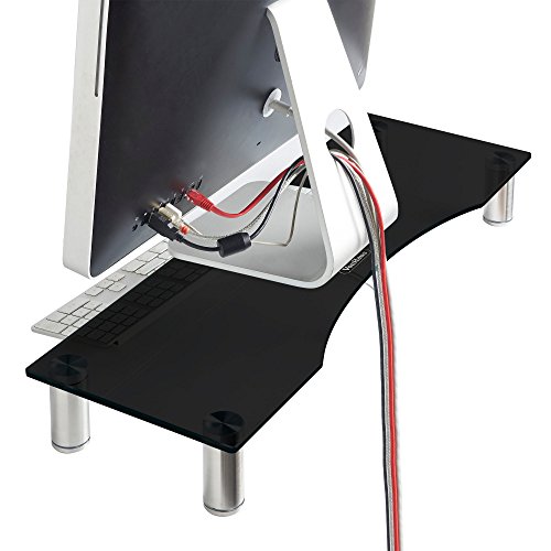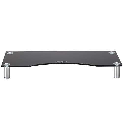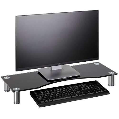 VonHaus Large Curved Glass Monitor Stand - Adjustable Height Multiple Screen Riser for PC Monitors, Computers, Laptops & TVs - 27.5 x 9.5 inches - Black