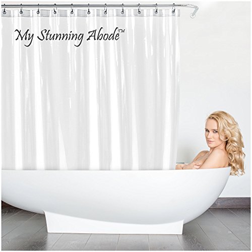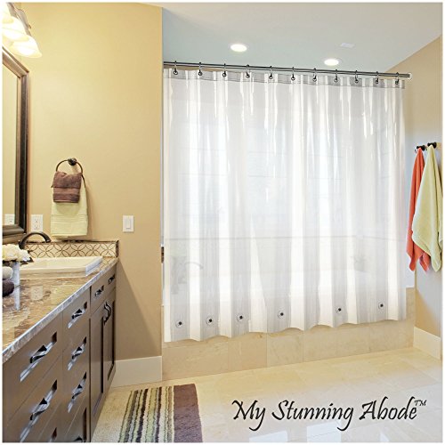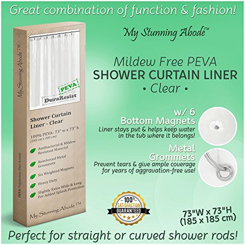 SAFE FOR YOU, AND THE ENVIRONMENT! Our Shower Curtain Liner is made of sturdy PEVA material that won't expose you and your family to dangerous chemical fumes! Odorless, PVC-free, mold and mildew resistant, and Chlorine-free