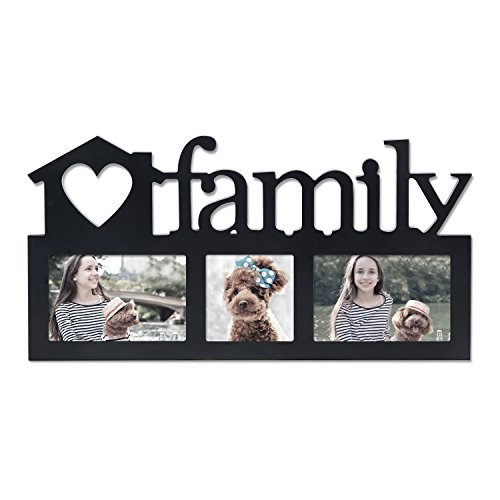 -. Title : Adeco 3-Opening Decorative Black Wood "Family" Wall Hanging Photo Frame, 4 by 6"