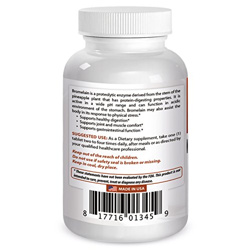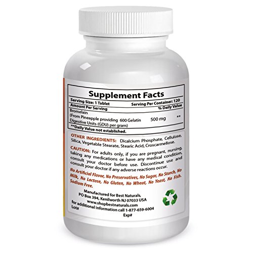 Best Naturals BROMELAIN SUPPLEMENTS for HEALTHY DIGESTION - it is derived from the pineapple plant, is a digestive enzyme that aids in the breakdown of protein.