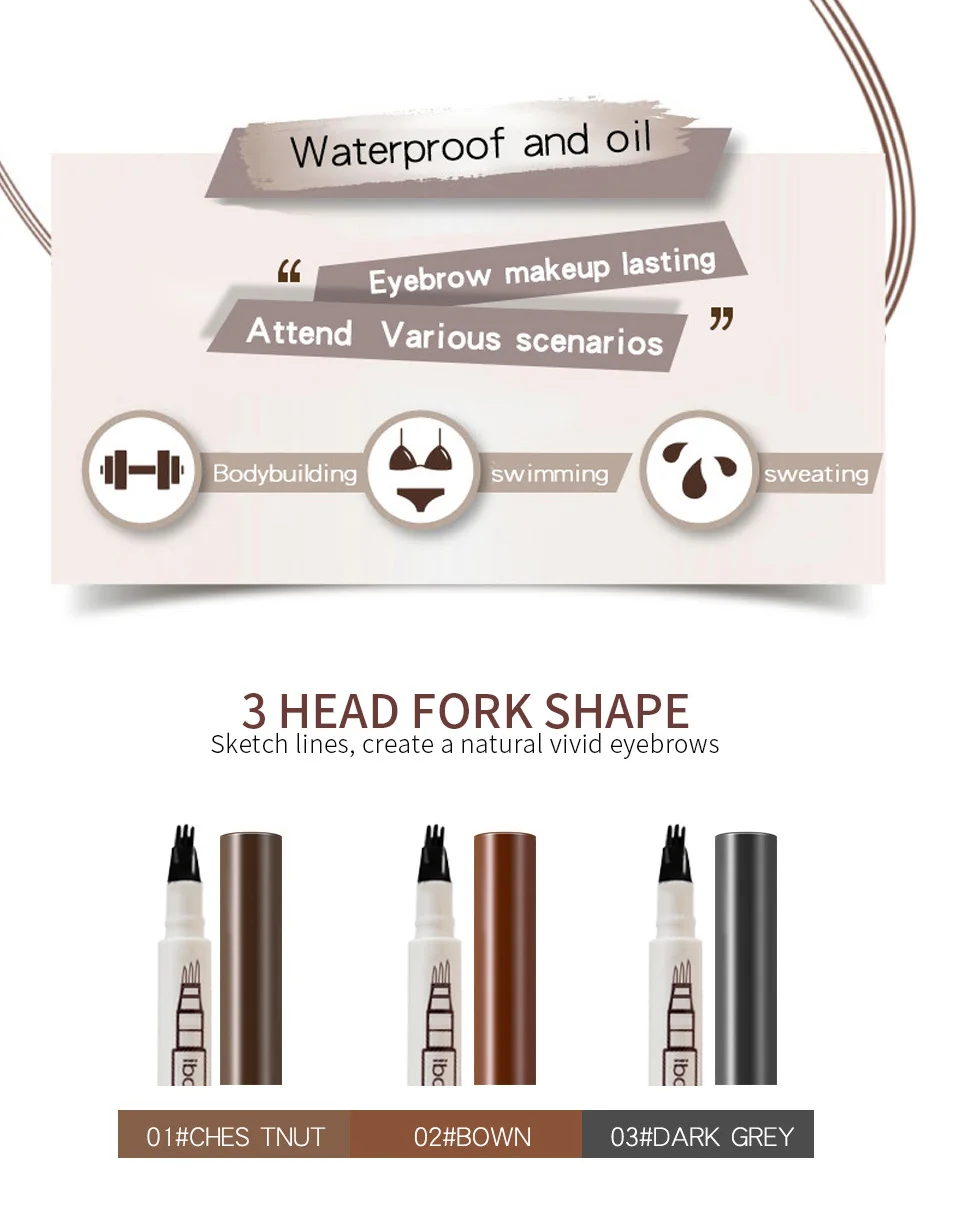 feature 1: fine sketch, 3 head fork tip, liquid eyebrow tattoo