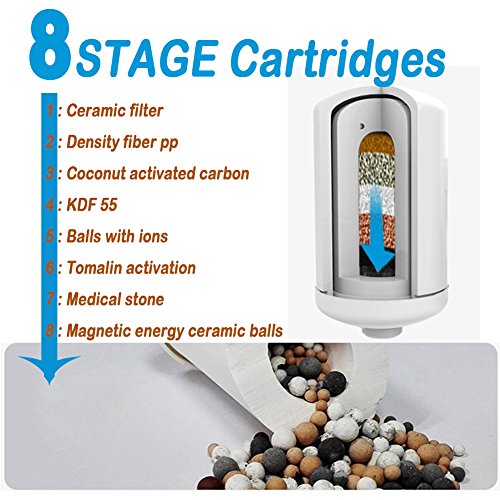 - ✔ Filter filled with Coconut activated carbon, That can reduce contaminants(like sediment, chlorine, cysts, benzene, asbestos, mercury & lead), Also can kills bacteria and inhibits the growth of scale, lime, mold, fungi blood worm and so on