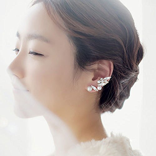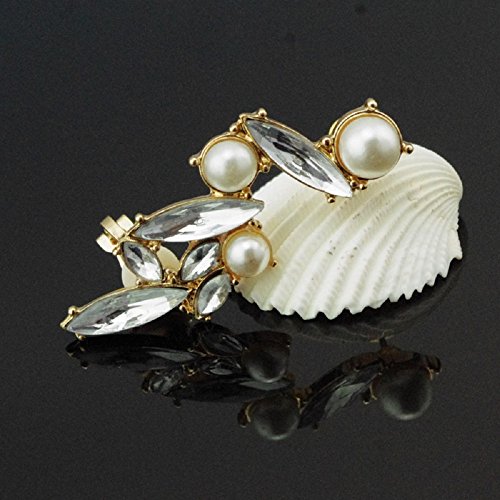Ear clip type alloy earrings with leaf shapes Venetian pearl for wedding, party and casual.