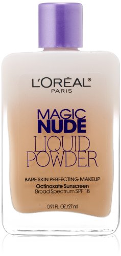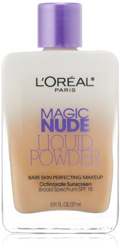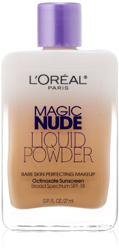 Get the ultimate un-makeup look with Magic Nude Liquid Powder Bare Skin Perfecting Makeup with SPF 18. Revolutionary liquid transforms on contact, leaving a soft powder like finish. This foundation is so amazingly lightweight it's like wearing no makeup at all! Just shake and apply – it’s magic!Feature
