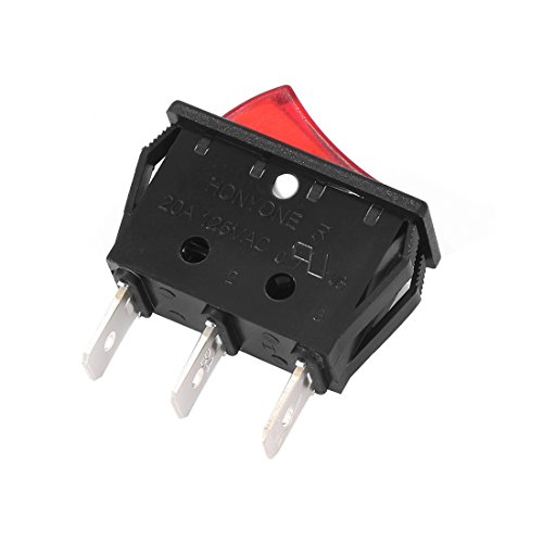 uxcell 10Pcs UL Listed AC 20A/125V 22A/250V SPST 3 Pin 2 Position Boat Rocker Switches On Off with Red Backlit LED Light