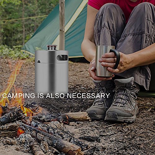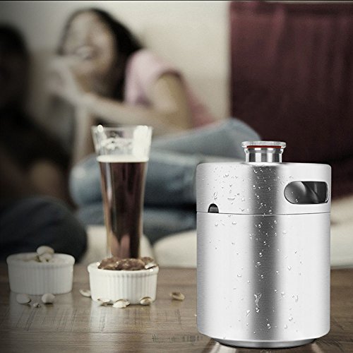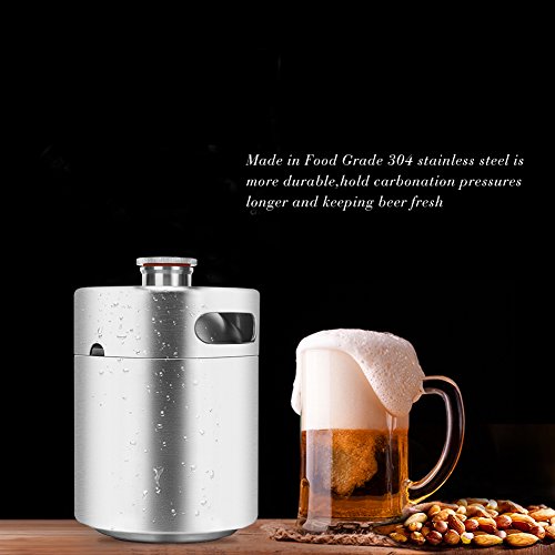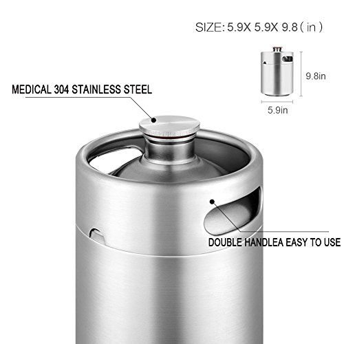 64 Ouncer Mini Keg Style Growler Stainless Steel Beer Barrel Holds Beer Double Handles, Silver by HAVEGET …