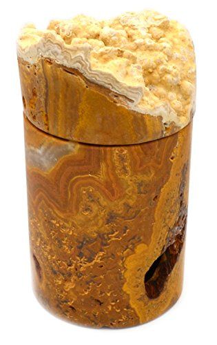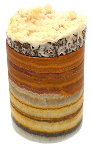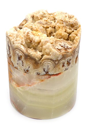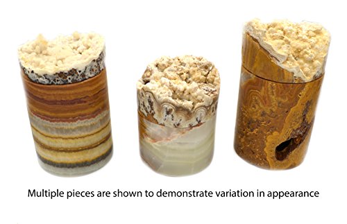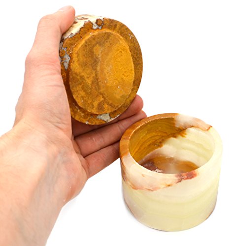 Natural Stone Round Decorative Box, 3.5" wide (1.9lbs), Carved from Real North American Onyx Aragonite - The Artisan Mined Series by hBAR