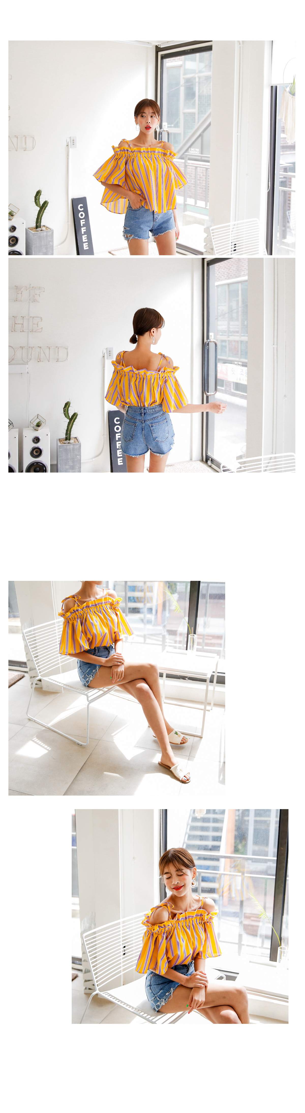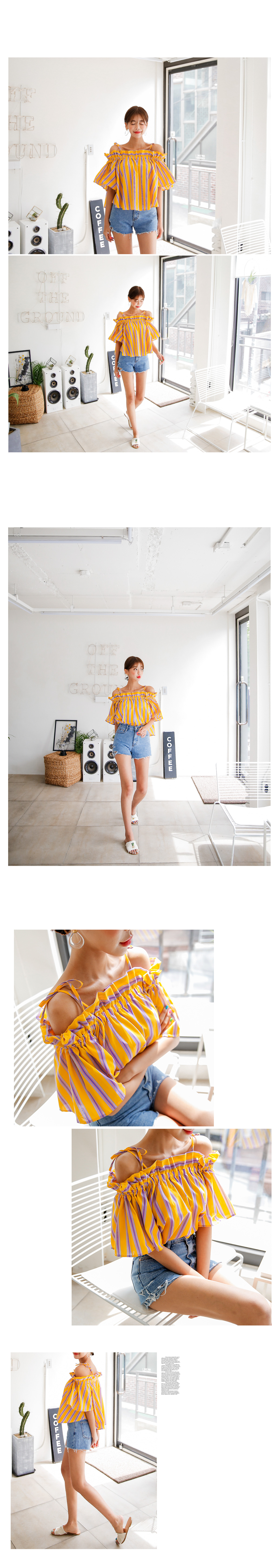 愛げに試着して質のオフショルダー・ブラウス紹介します。