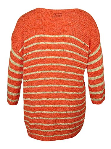 This casual yet elegant sweater features crewneck and crochet knit. 3/4 length sleeve.