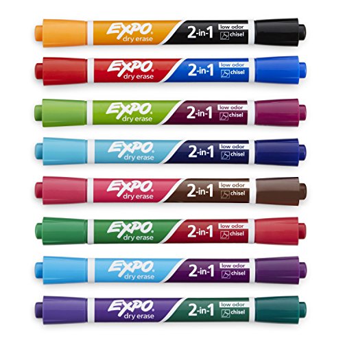 Includes: 1 Black/Orange, 1 Blue/Red, 1 Garnet/Green, 1 Amethyst/Aqua, 1 Plum/Lime, 1 Sapphire/Aquamarine, 1 Emerald/Purple and 1 Brown/Pink dry erase marker