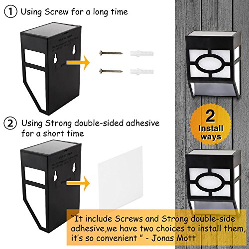 - ☀【 EASY TO INSTALLATION 】These Solar Lights Outdoor are wireless. As external wires are eliminated, the risk of accidents are minimized and easy to install/reinstall. We offer 2 installation ways for you to choose form - By using screws or using double sided adhesive