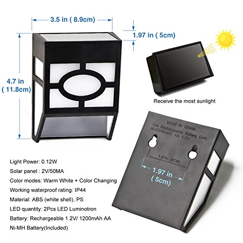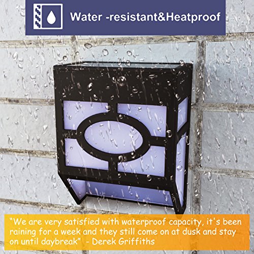 - ☀【 WEATHER RESISTANT 】The Wall Solar Light make of high quality ABS material - weatherproof and durable make these solar lights fixtures works well and safe in different kinds of weathers. And fully recharges the battery in 6 hours,it can keep lighting for 8 hours
